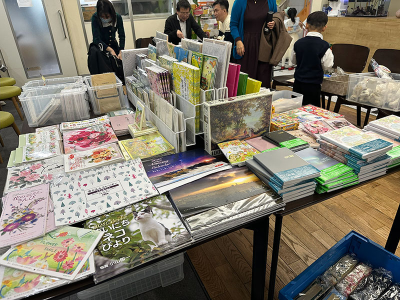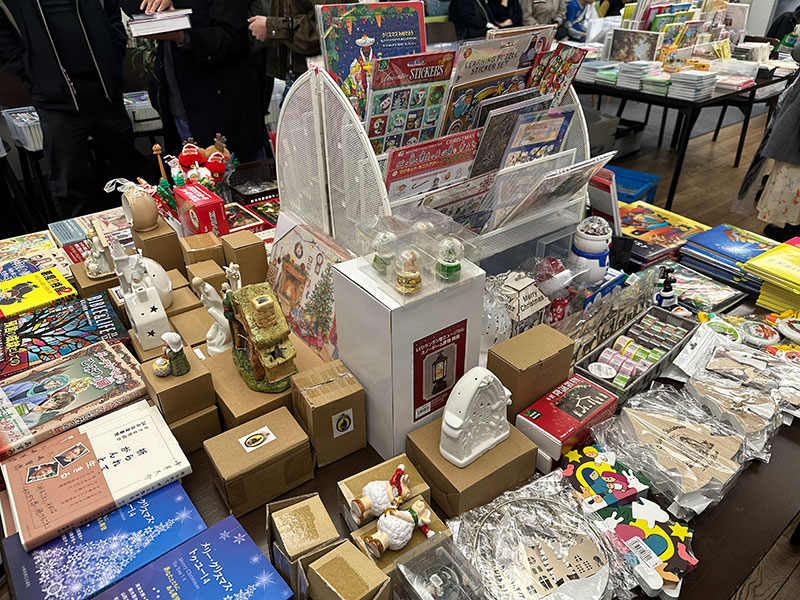 また、手帳やメッセージカードといったステーショナリーに加え、これから迎える季節にぴったりのクリスマスグッズも豊富に用意され、参加者は熱心に品定めをされていました。普段、書店まで足を運ぶのが難しい方々にとって、実際に手に取って購入できる貴重な機会となったことと思います。