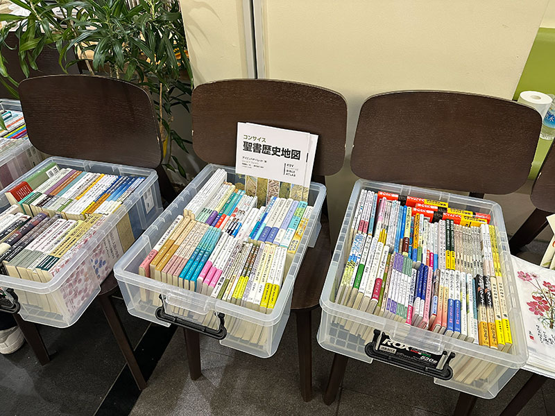 会場には、最新の聖書研究書から実用書、お子様向けの絵本まで、幅広い書籍が並びました。