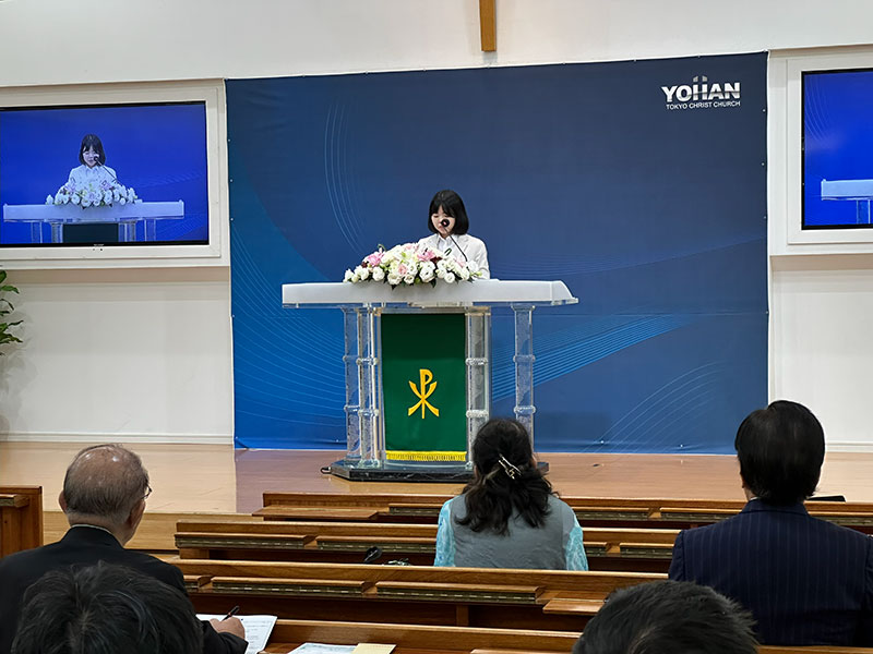 販売に先立ち、いのちのことば社の担当者の方から、EHC(Every Home for Christの略称で、日本では全国家庭文書伝道協会という名称)で、トラクト(福音のメッセージを、短く分かりやすい言葉で伝えたもの)を配布する働きについて証ししてくださいました。全国の教会でも地道に伝道を行っているとのことで、私たちも主の福音を多くの人々に宣べ伝える働きを大切に行っていこうと改めて考える良い機会となりました。