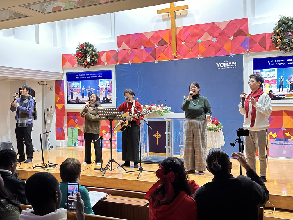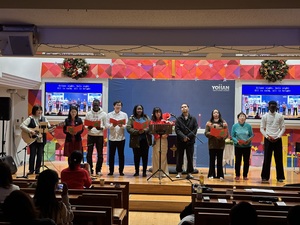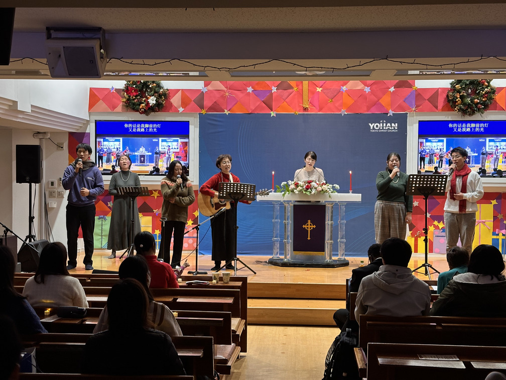 去る12月24日のクリスマスイブ、ヨハン東京キリスト教会にて「クリスマス・キャンドルサービス(聖夜礼拝)」が捧げられました。今年は、日本部、中国部、English Ministry(英語部)の三つの部署がひとつに集い、合同でイエス・キリストのご降誕をお祝いする特別な時間となりました。