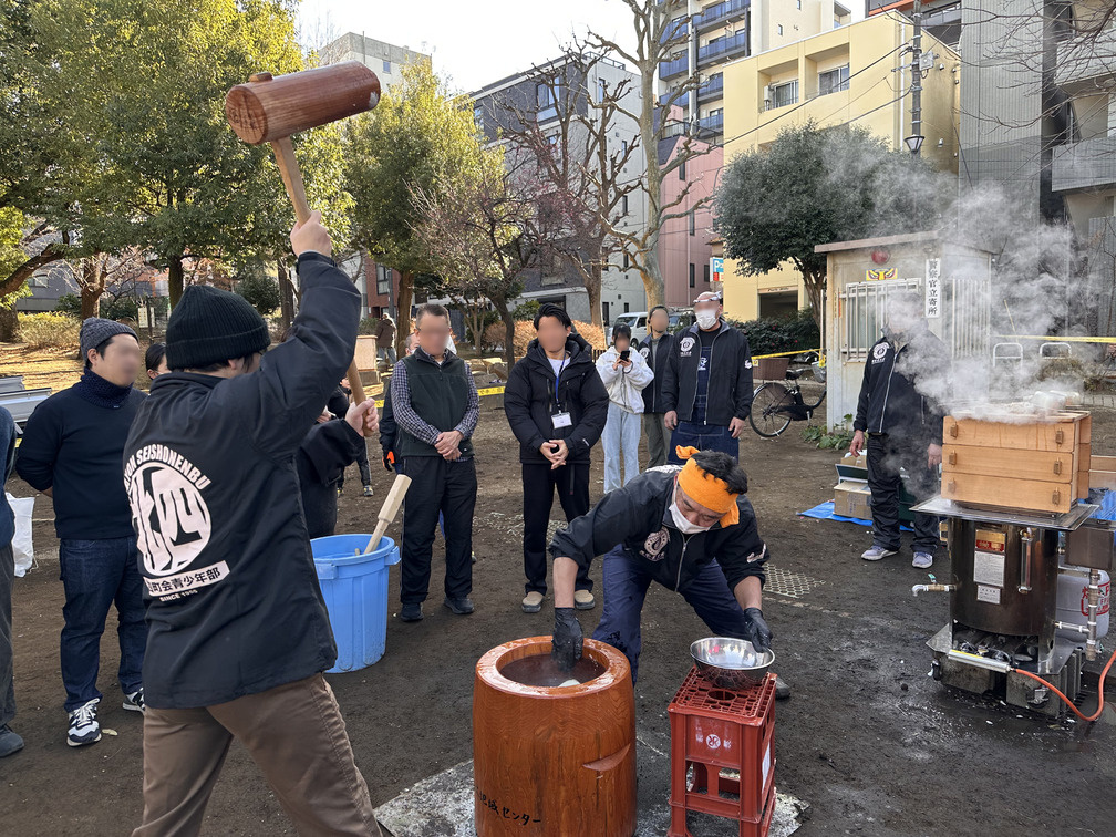1月11日、ヨハン東京キリスト教会が位置する北新宿4丁目の自治会にて、恒例のもちつき大会が開催されました。