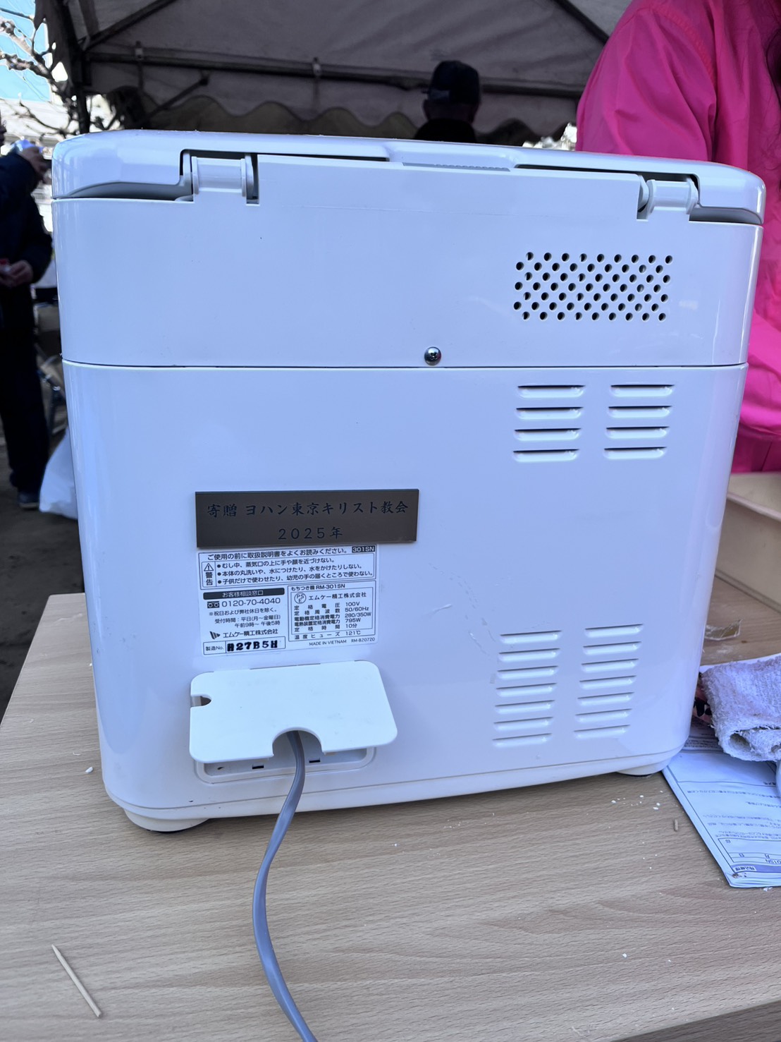 この度、その寄付金を活用して新しい餅つき機を購入されたとの嬉しいご報告をいただきました。今回、その新しい機械で作られたつきたてのお餅を、教会の信徒も地域の皆様と一緒に美味しくいただきました。
