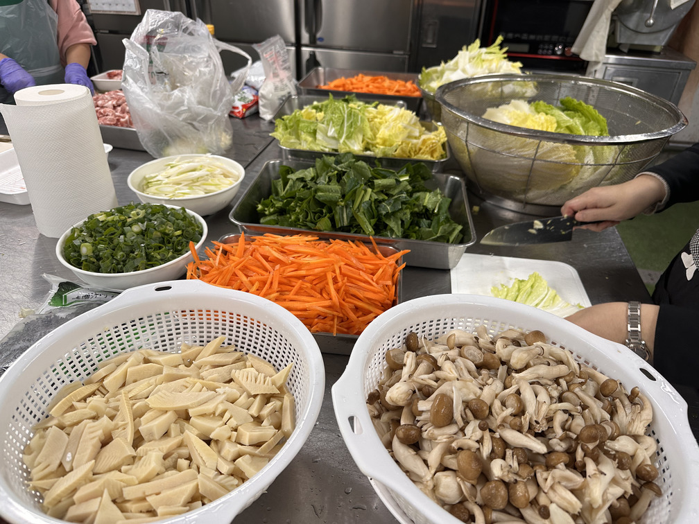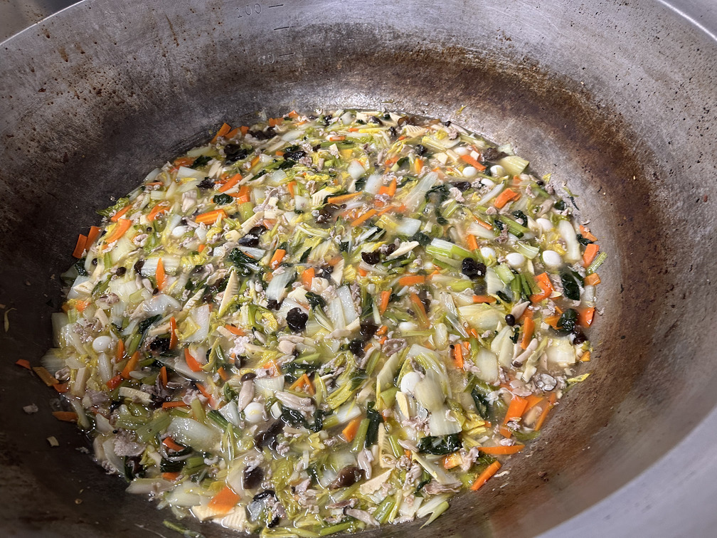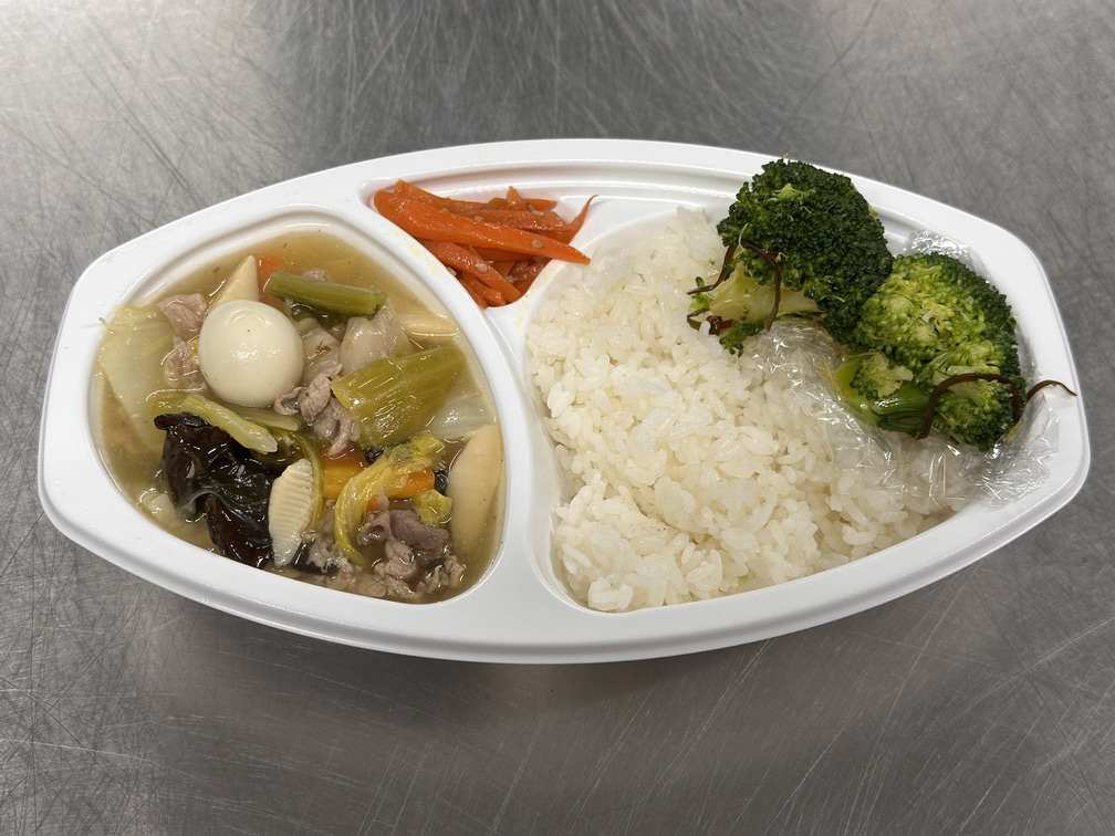 今回のメインメニューは、心も体も温まる「中華丼」。 たっぷりの野菜と旨味の詰まったあんかけをご飯にのせて、温かいお味噌汁と一緒にご提供しました。「美味しい!」というお子様たちの声や、地域の皆さまの笑顔に、スタッフ一同元気をいただきました。